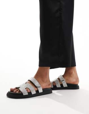 Steve Madden Missile-R strap sliders in embellished silver | ASOS